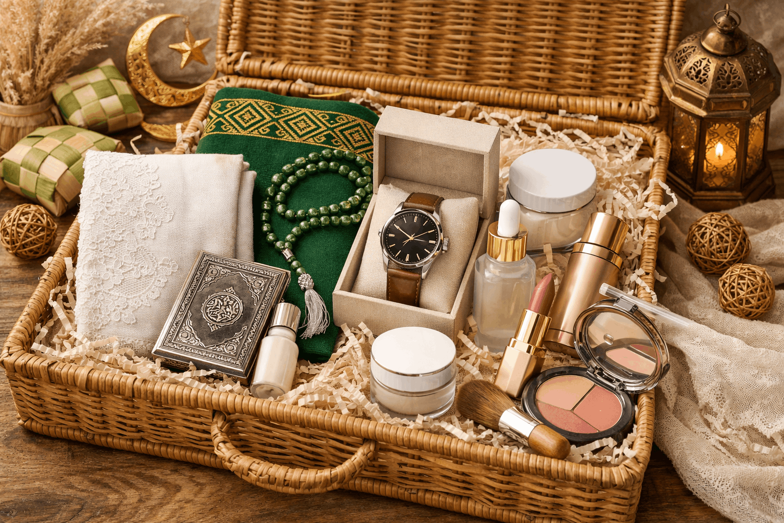 Beberapa ide hampers Lebaran seperti mukena, sajadah, kerudung, jam tangan, hingga paket skincare bisa jadi pilihan hampers yang simple tapi tetap berkesan.