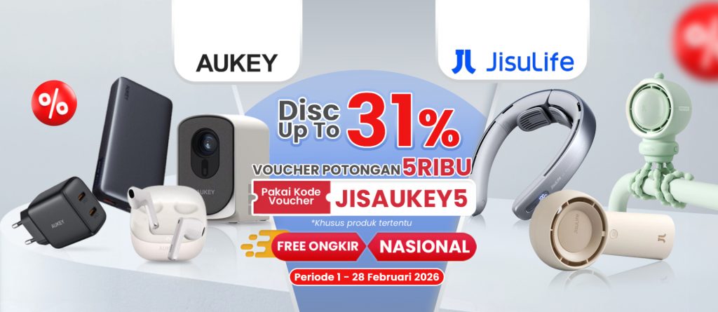 Produk dari AUKEY seperti charger, powerbank, dan car charger selalu jadi andalan.