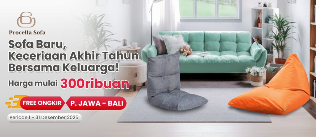 Sekarang ada promo Procella Sofa mulai 300 ribuan, free ongkir Jawa–Bali, dan diskon sampai 7%. Kamu bisa dapetin model minimalis, modern, sampai yang empuk banget buat santai saat natal dan malam tahun baru.