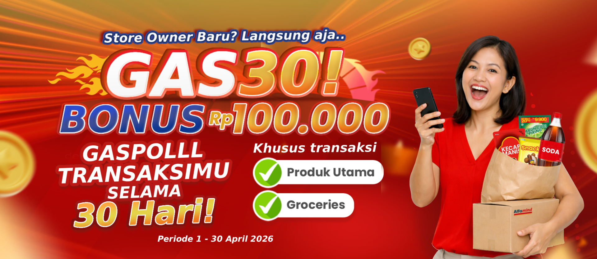 Program GAS30 Bonus Rp100.000 adalah promo khusus untuk Store Owner baru yang bergabung di periode 1–30 April 2026.