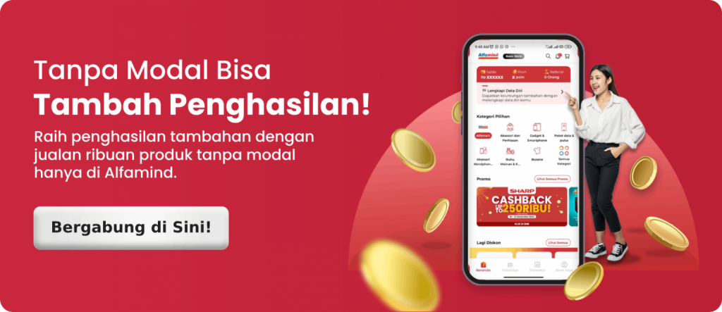 Mulai dari perlengkapan ibadah, smartphone, peralatan dapur, hingga produk kecantikan, semuanya bisa kamu tawarkan langsung dari aplikasi Alfamind.